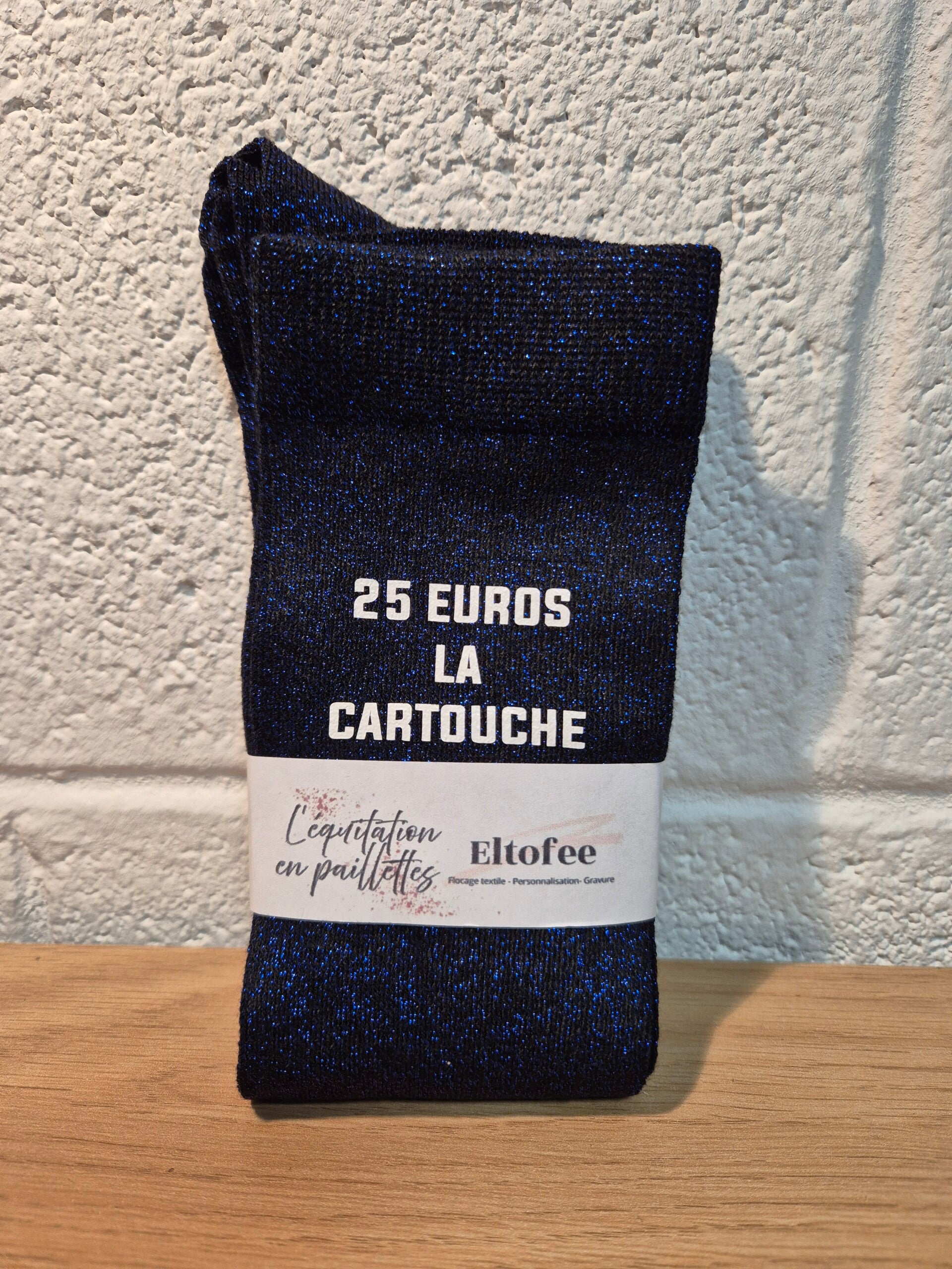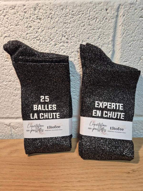 Ces chaussettes à paillettes d'équitation sont disponibles en noir, doré, vert ou bleu.